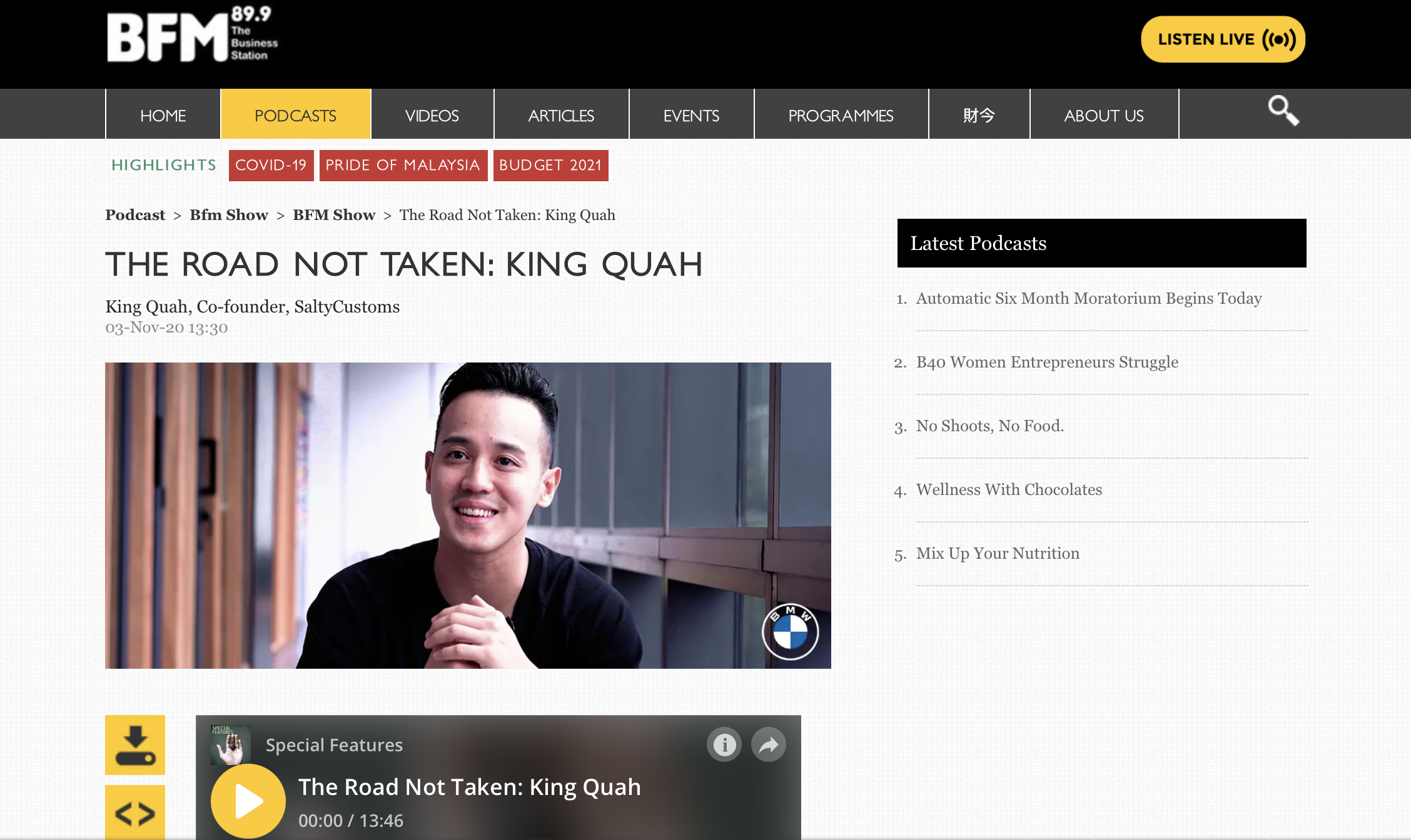 We speak with King Quah, co-founder of custom t-shirt printing design company, SaltyCustoms, on his entrepreneurial journey, creating a brand that makes a meaningful impact on his community, and how he turns obstacles into progress. This is part of our series “The Road Not Taken”, featuring dynamic, unconventional Malaysian personalities who stand out from the rest, brought to you by the BMW 2 Series Gran Coupé.
